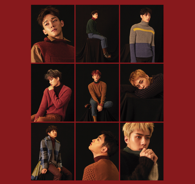 The released teaser image shows each EXO member dressed in warm toned outfits that perfectly fit in with the winter season. EXO’s upcoming title track “For Life” was co-created by hit songwriter Kenzie along with Matthew Tishler. The song is a pop ballad track with a sweet piano melody and a beautiful string accompaniment, with lyrics that are about looking at one person for the rest of one’s life.